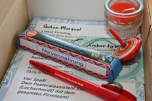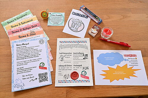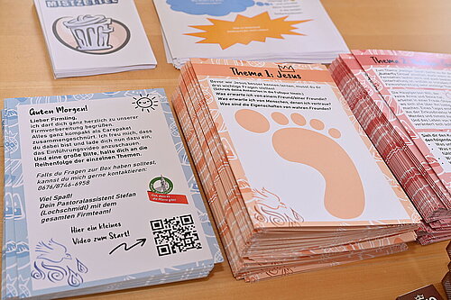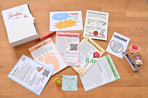 Nach vielen Beratungen des Firmteams, sind wir inzwischen auf den Plan C für die Firmvorbereitung übergegangen. Jeder Firmling erhält eine Firmbox in der viele Themen, die er oder sie auch am Wochenende erlebt hätte. Ganz wichtig war, dass es nicht nach Religionsunterricht aussah und es sind viele interaktive Aufgaben gegeben.