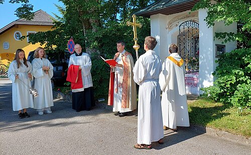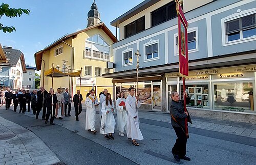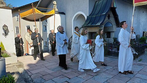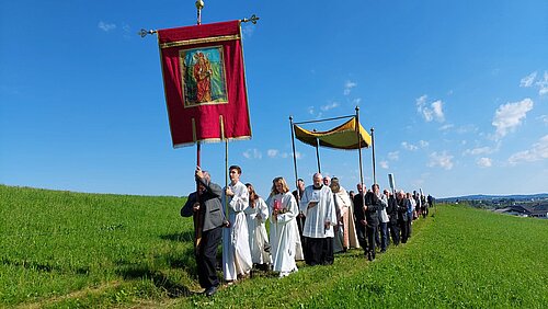 Der Flurgang um gedeihliches Wetter und eine gute Ernte am Dreifaltigkeitssonntag hat eine lange Tradition. Nach mehrjährigen Ausfall durch Corona, war die Freude und Dankbarbeit bei den Gläubigen besonders zu spüren. Bei herrlichem Wetter, Gebet, Texten zur Schöpfung, Evangelium und den Segen ging es durch den Ort, die Wiesen zur Kapelle am Pfaffenbühel und wieder zurück in die Stadtpfarrkirche.  Corona und die Kriege in der Welt zeigen uns auf, dass es nicht selbstverständlich ist, in Frieden und sozial abgesichert leben zu können. Das schöne Wetter hat zu dieser würdevollen Prozession sicher auch beigetragen.