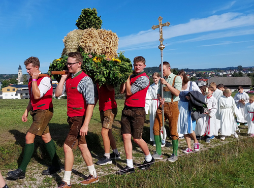 Das Erntedankfest wurde heuer bei schönstem Wetter mit großer Beteiligung der Seekirchner Vereine, den Gemeindevertretern/innen und der Pfarrgemeinde gefeiert. Ein guter Einstieg für den neuen Pfarrer P. Laurent Chardey, der herzlich empfangen wurde, aber auch gleich  mit seiner freudigen und schwungvollen Art die Herzen der großen Pfarrgmeinschaft gewinnen konnte.