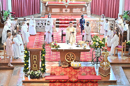 "Gott sprach: Meinen Regenbogen setze ich in die Wolken; er soll das Zeichen des Bundes werden zwischen mir und der Erde. (Genesis 9,12a.13)" unter diesen Motto stand die heurige Erstkommunion. Coronabedingt hat jede Volkschulklasse ihre eigene Feier gehabt. Die Pfarre Seekirchen wünscht ihren 96 Erstkommunionkindern alles Gute und Gottes Segen!