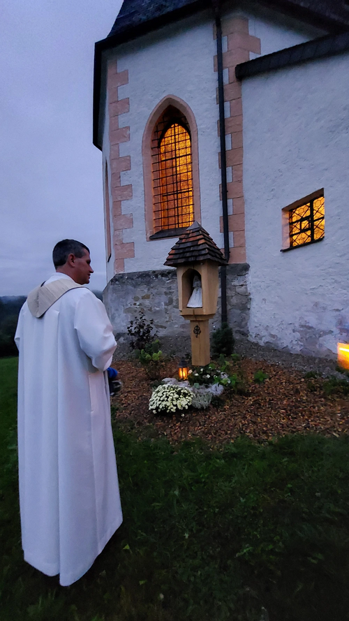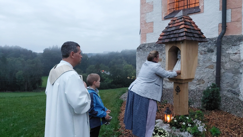 In einer sehr Stimmungsvollen Feier wurde am 9.9.2022 ein neues Marterl an der Mühlbergkirche eingeweiht.