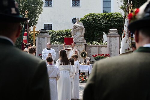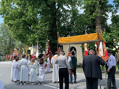 Endlich konnten wir wieder ein Fronleichnamsfest mit vielen Menschen feiern. Nach dem Gottesdienst in der Kirche konnte die feierliche Prozession mit den Vereinen und unserer Stadtmusik bei strahlendem Wetter abgehalten werden. Es war ein sehr schönes Fest, das die Zusammengehörigkeit wieder gut spüren hat lassen.
