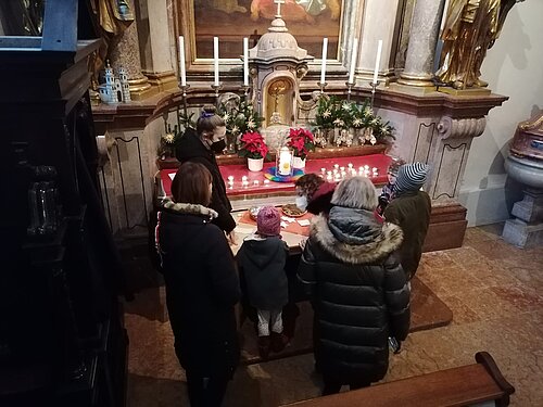 Am Heiligen Abend waren alle Kinder und Familien eingeladen, ganz bewusst den Weg zur Krippe zu gehen: In einem Stationenbetrieb haben sie sich dem Fest der Menschwerdung Gottes angenähert und sich auf Weihnachten eingestimmt. Für die zahlreichen Besucher*innen war es ein stimmungsvolles Angebot, das sie sehr gerne genützt haben.