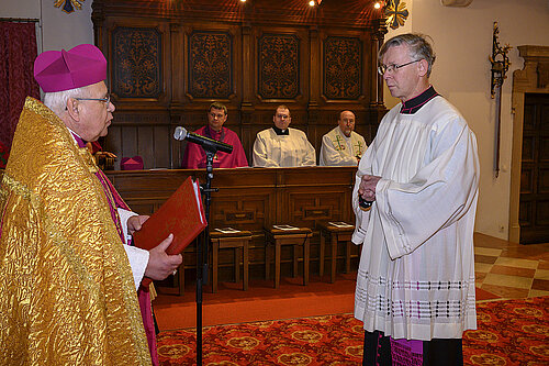 Viele Seekirchner, Henndorfer und Köstendorfer füllten am 6.1. nachmittags die Stiftskirche, wo im Rahmen einer vom Vitus-Chor gestalteten Vesper der neue Kanonikus von Stiftspropst Detlef Lenz feierlich installiert wurde. Mit einer Agape im Stiftsgebäude hat dieses Fest einen schönen Abschluss gefunden.